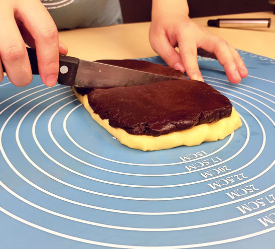 4.取三分之一的面粉加入可可粉,揉成可可面團;其余揉成原味面團;(圖4)