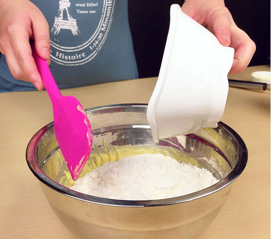 2.將雞蛋液分三次加入,每次加入時要等雞蛋液和黃油充分融合后再加入;(圖2)