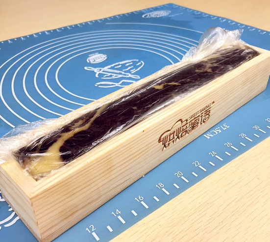 9.包上保鮮膜放入冰箱冷凍至硬后切片;(圖9)