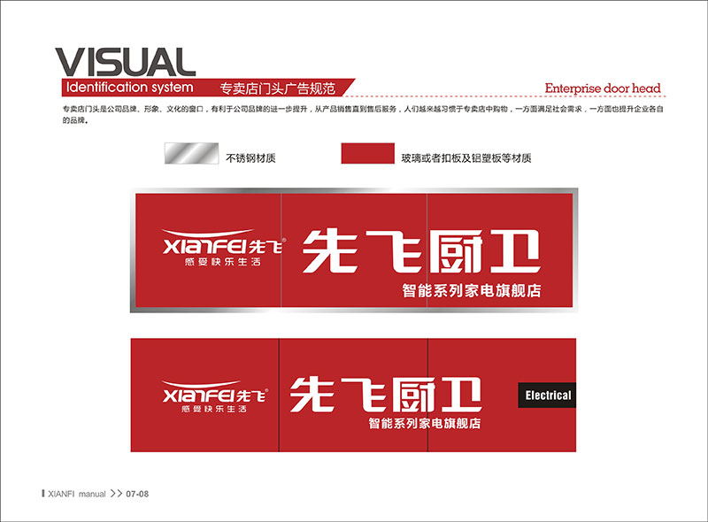4、節(jié)約化的原則:VI設計是要使用的,故我們既需要考慮品牌傳播的效果,也需要考慮使用者的便利與成本。比如同一種材質(zhì)的門頭制作,如果經(jīng)銷商按照先飛VI系統(tǒng)設計要求則成本有較大幅度的增漲,那么VI設計就是失敗的。設計需要考慮使用,反對為了設計而設計。