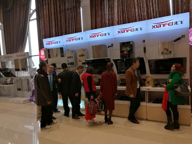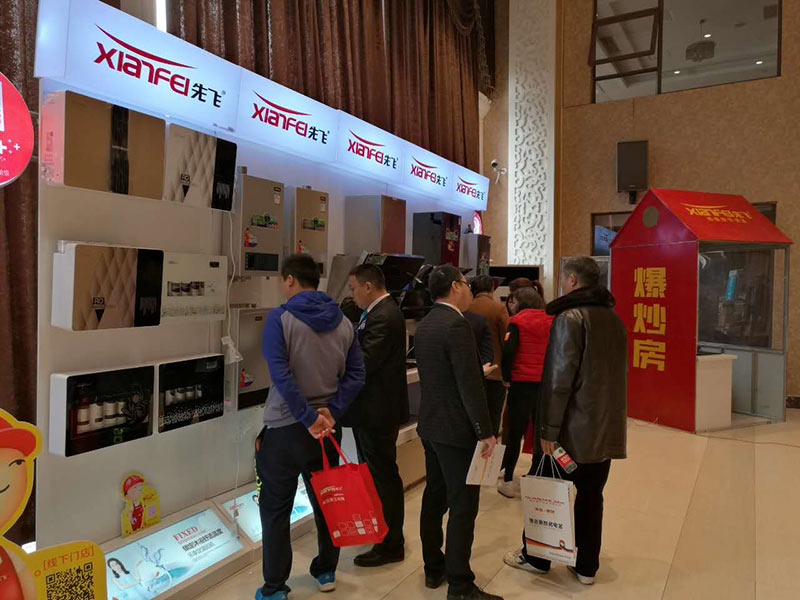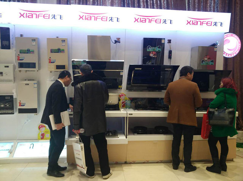 以倍受追捧的先飛“蒸汽噴洗”煙機為首,展廳里共構(gòu)建“煙灶”、“燃氣熱水器”、“凈水器”三大板塊。在展會所有品牌中脫穎而出,展臺前人聲鼎沸,氣氛異?;鸨?